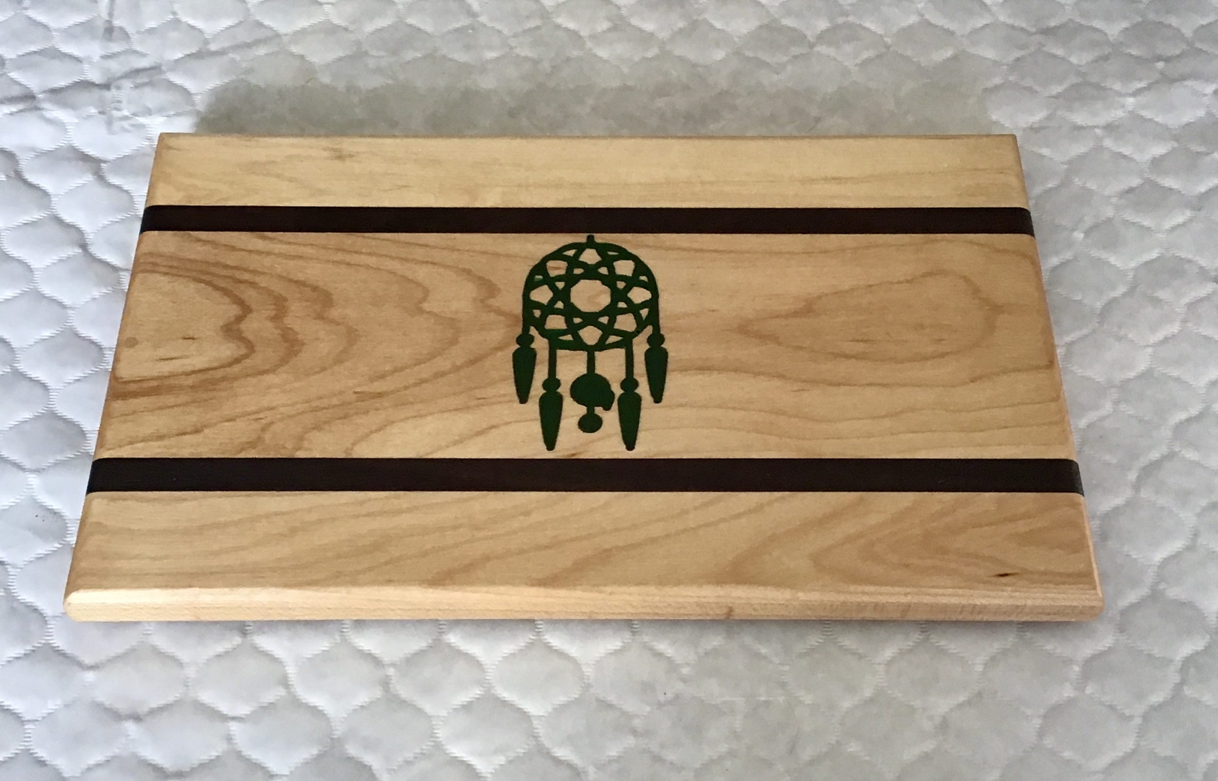 Hand-crafted at Wick-It. Locally sourced maple and walnut with a food grade finish. Easy care by rubbing with mineral oil. 14X7X.75