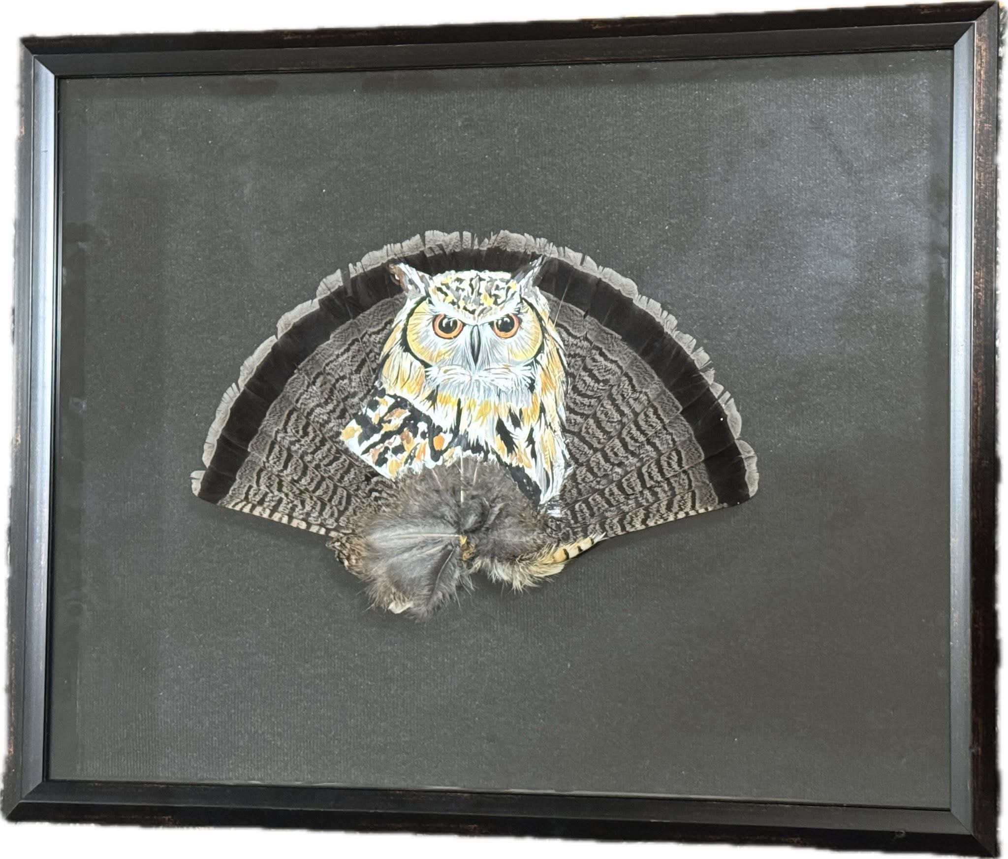 16×20 Framed Owl painting on Partridge Tail Feather.